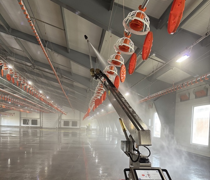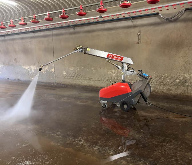 ROBOT GO Cleaner je specijalno adaptiran od strane Envirologic AB za uspešno ispiranje farmi za uzgoj živine.